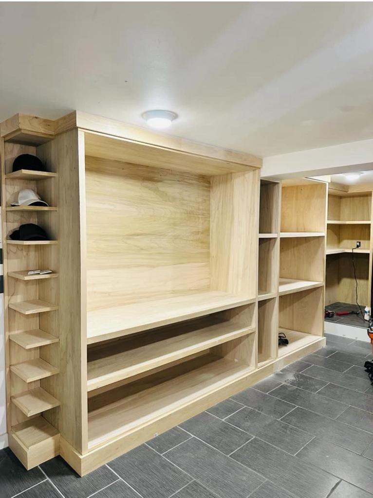 This project involves the design and installation of custom-built storage solutions tailored for a professional gym setting. The storage units are crafted to efficiently organize and store various gym equipment, including weights, mats, and accessories. The design features sturdy, durable materials suitable for heavy use, with a focus on maximizing space and functionality. The natural wood finishes provide a sleek and professional appearance, enhancing the overall aesthetic of the gym while ensuring that all equipment is easily accessible and well-organized. These custom solutions are designed to support the gym’s operational efficiency and maintain a clean, inviting environment for clients.
